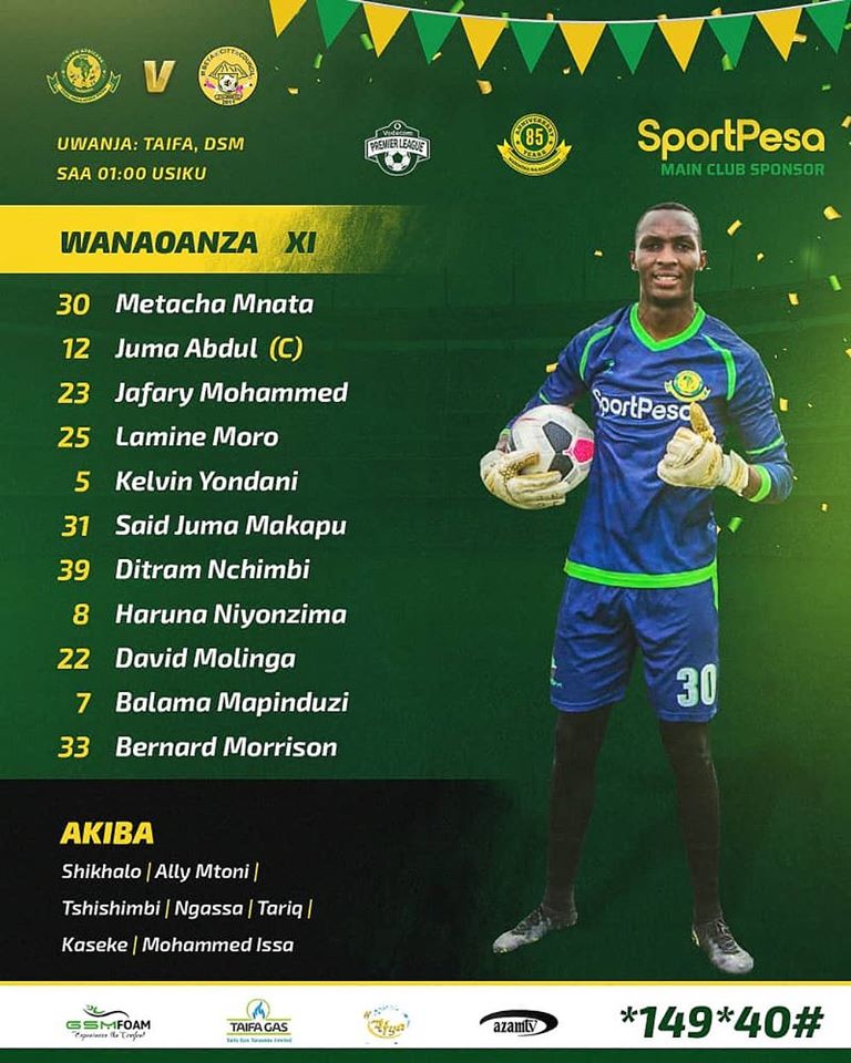 Kikosi cha Yanga dhidi ya Mbeya City hiki hapa