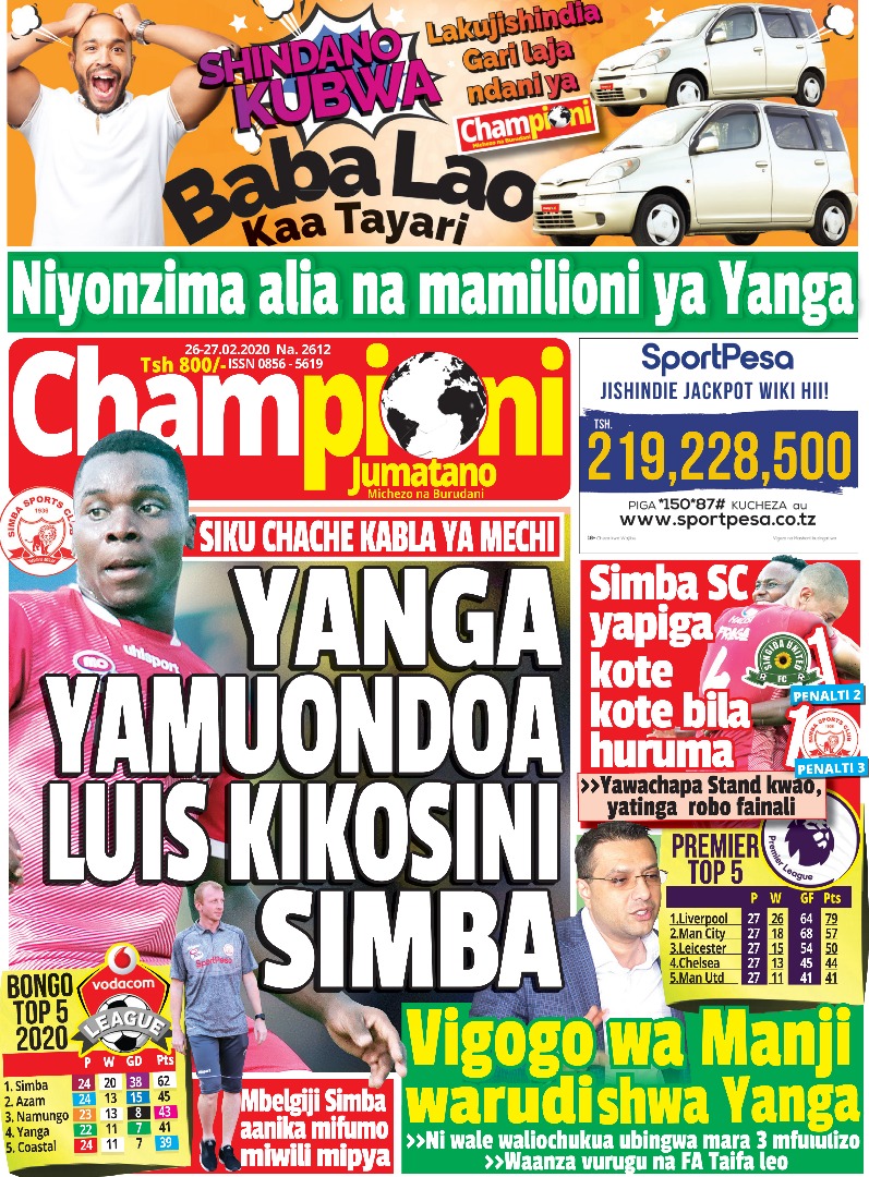 Home Uncategorized MUONEKANO WA UKURASA WA MBELE GAZETI LA CHAMPIONI JUMATANO Uncategorized MUONEKANO WA UKURASA WA MBELE GAZETI LA CHAMPIONI JUMATANO By admin - February 26, 2020 132 0 MUONEKANO wa Ukurasa wa mbele Gazeti la CHAMPIONI Jumatano