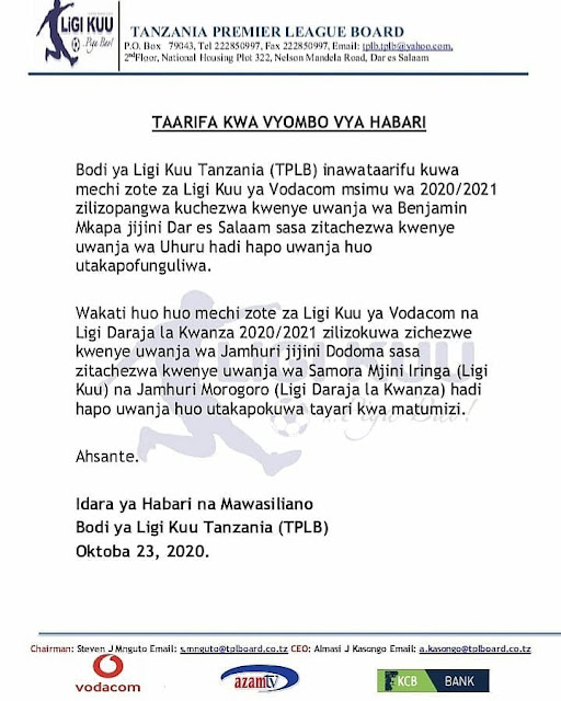Home Uncategorized MECHI ZA UWANJA WA MKAPA ZAPELEKWA UHURU Uncategorized MECHI ZA UWANJA WA MKAPA ZAPELEKWA UHURU By admin - October 23, 2020 339 0 MECHI zilizopangwa kuchezwa Uwanja wa Mkapa sasa kuchezwa Uwanja wa Uhuru