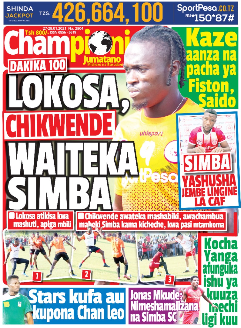 Home Ligi Kuu MUONEKANO WA UKURASA WA MBELE GAZETI LA CHAMPIONI JUMATANO Ligi Kuu MUONEKANO WA UKURASA WA MBELE GAZETI LA CHAMPIONI JUMATANO By admin - January 27, 2021 275 0 MUONEKANO wa ukurasa wa mbele Gazeti la Championi Jumatano