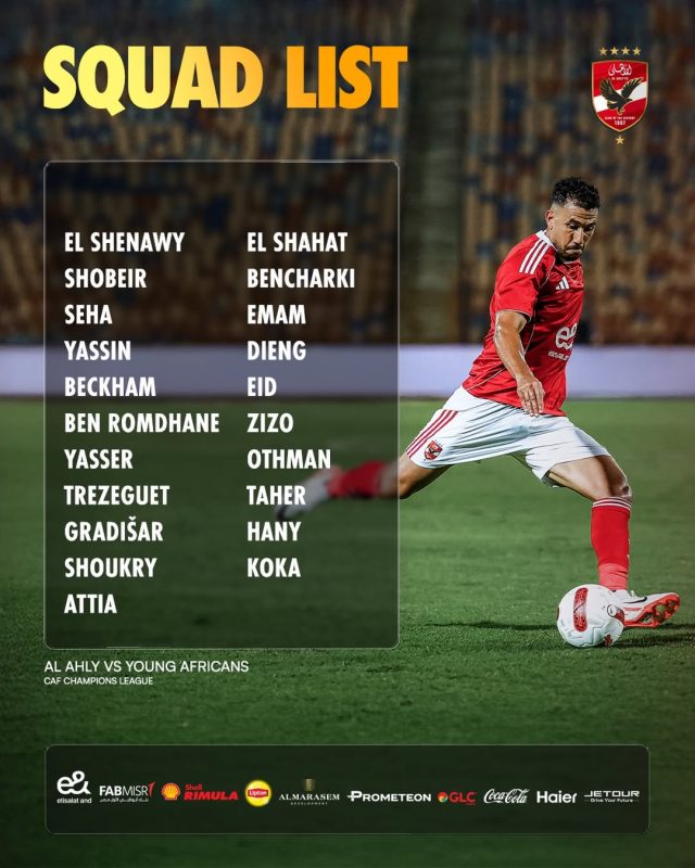 Katika kikosi hicho, Ahly imejumuisha makipa wake tegemeo akiwemo Mohamed El Shenawy, sambamba na Mostafa Shobeir na Mohamed Seha, hali inayoonyesha benchi la ufundi limejipanga vyema katika eneo la ulinzi wa lango kuelekea mchezo huo mgumu.