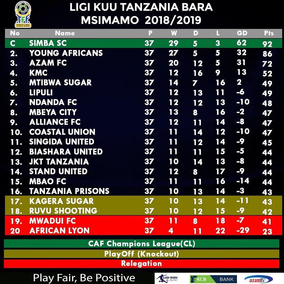 Maana yake Stand anakuwa na Faida kwenye Head to Head. Na kwa mjibu wa takwimu hizo African Lyon na Kagera Sugar wameshuka moja kwa moja na Stand United na Mwadui FC zinacheza Play Off.